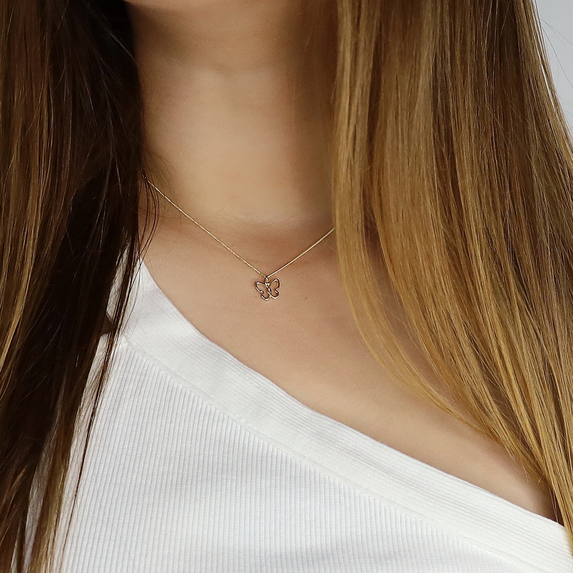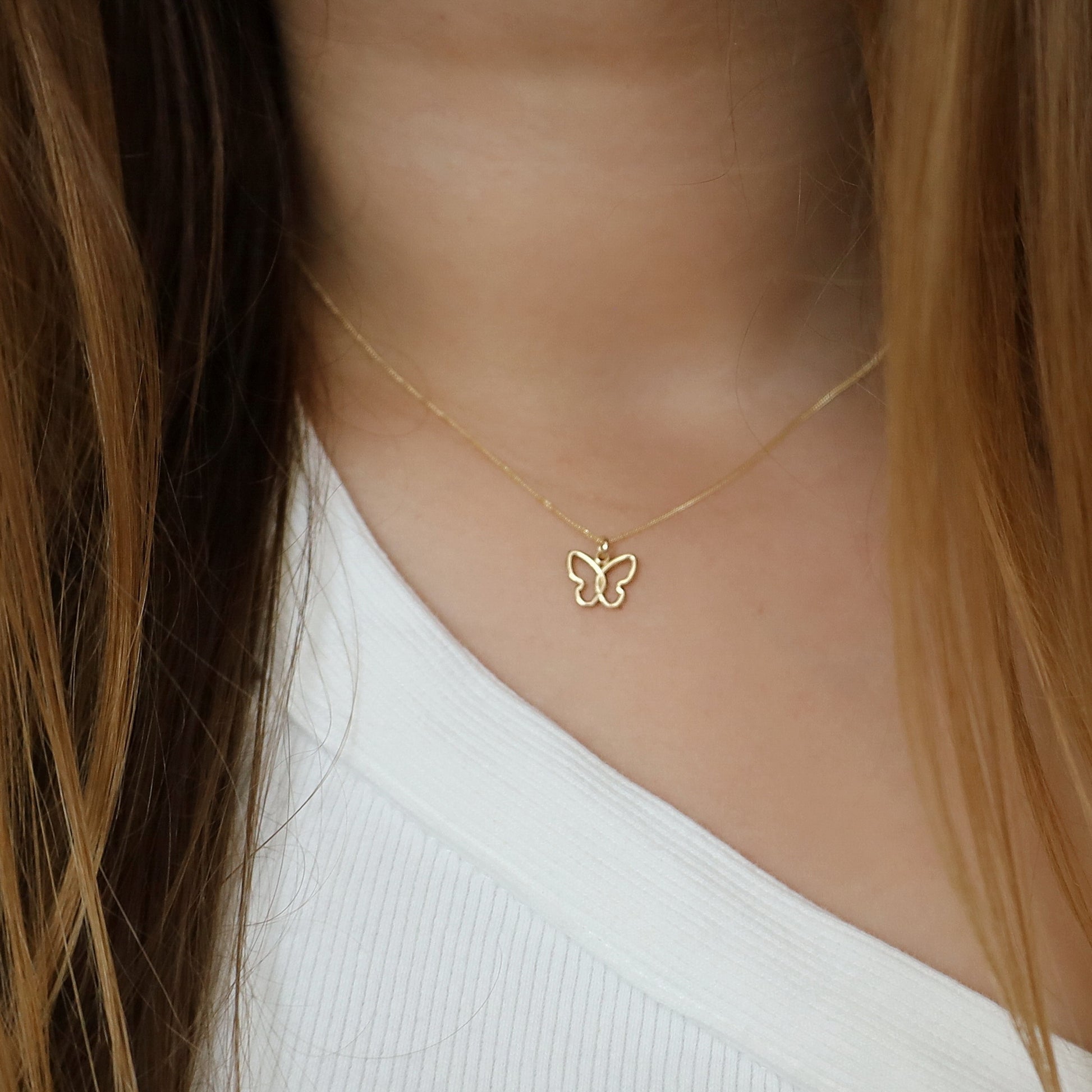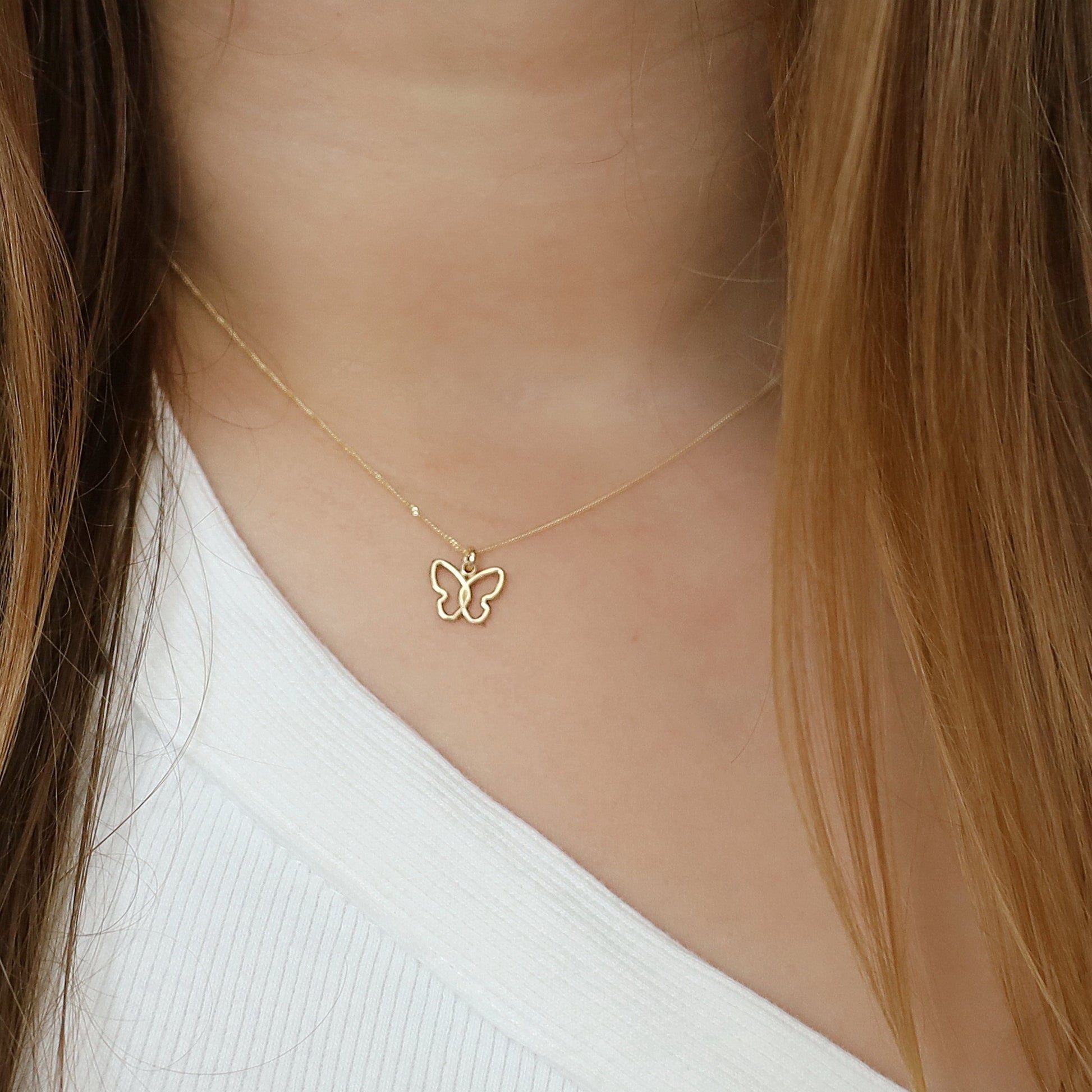14K Solid Gold Butterfly Charm Necklace • B410