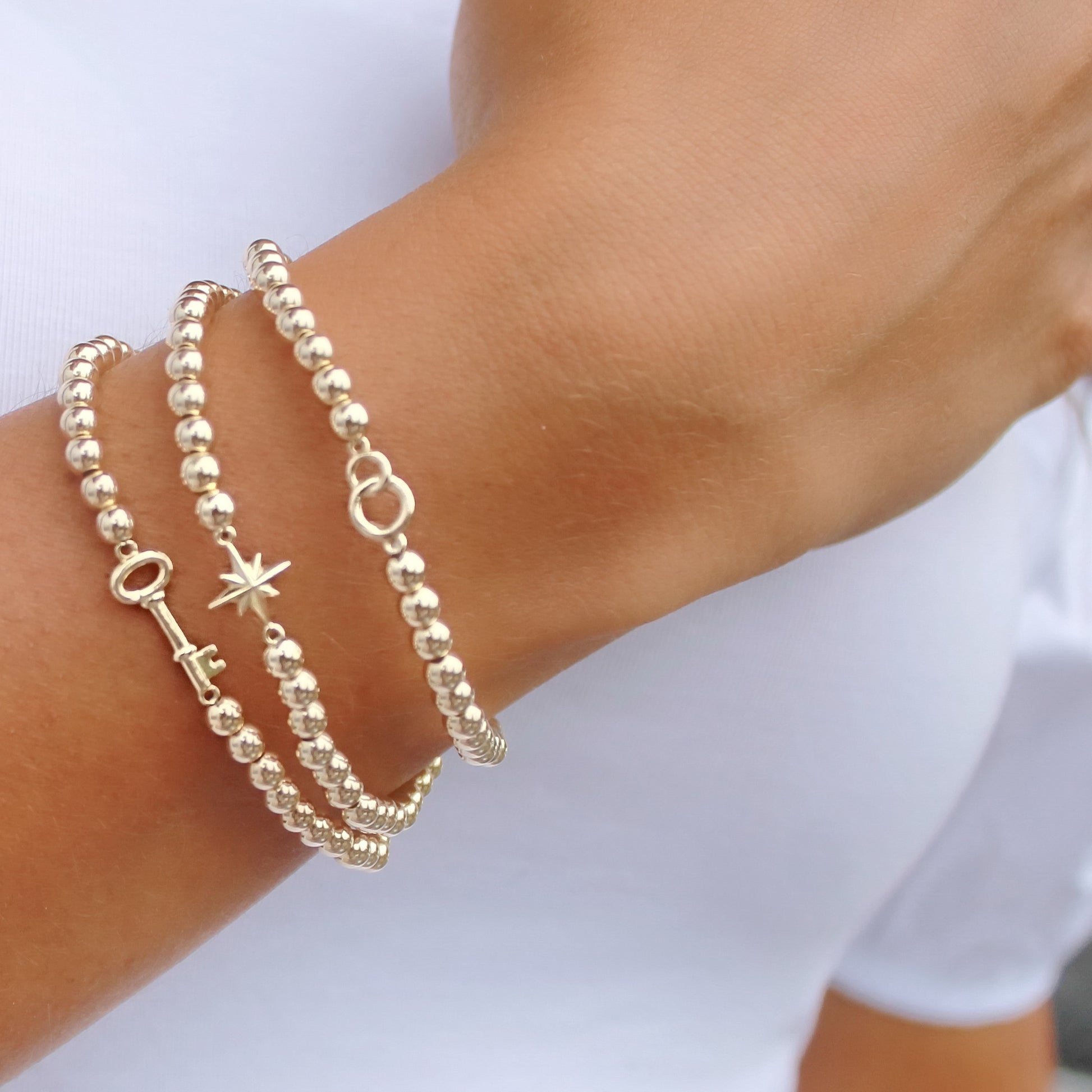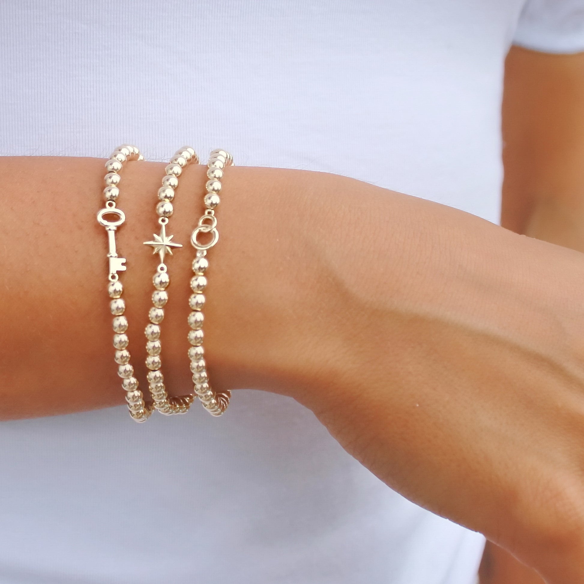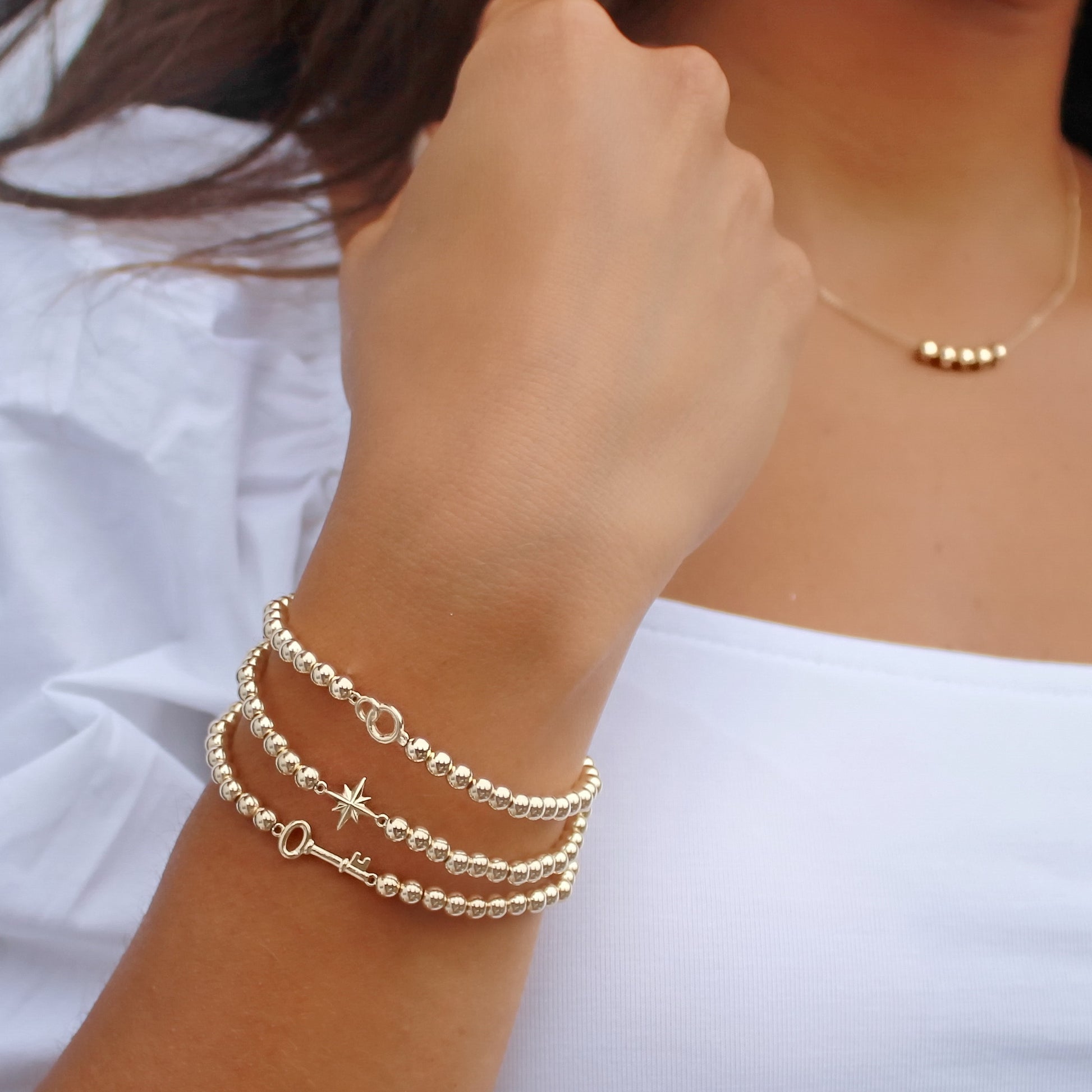 This 14K Solid Gold Star beaded bracelet will be sure to add a beautiful elegance to your everyday look. Wear it on its own or pair it with one of your chic favorites.