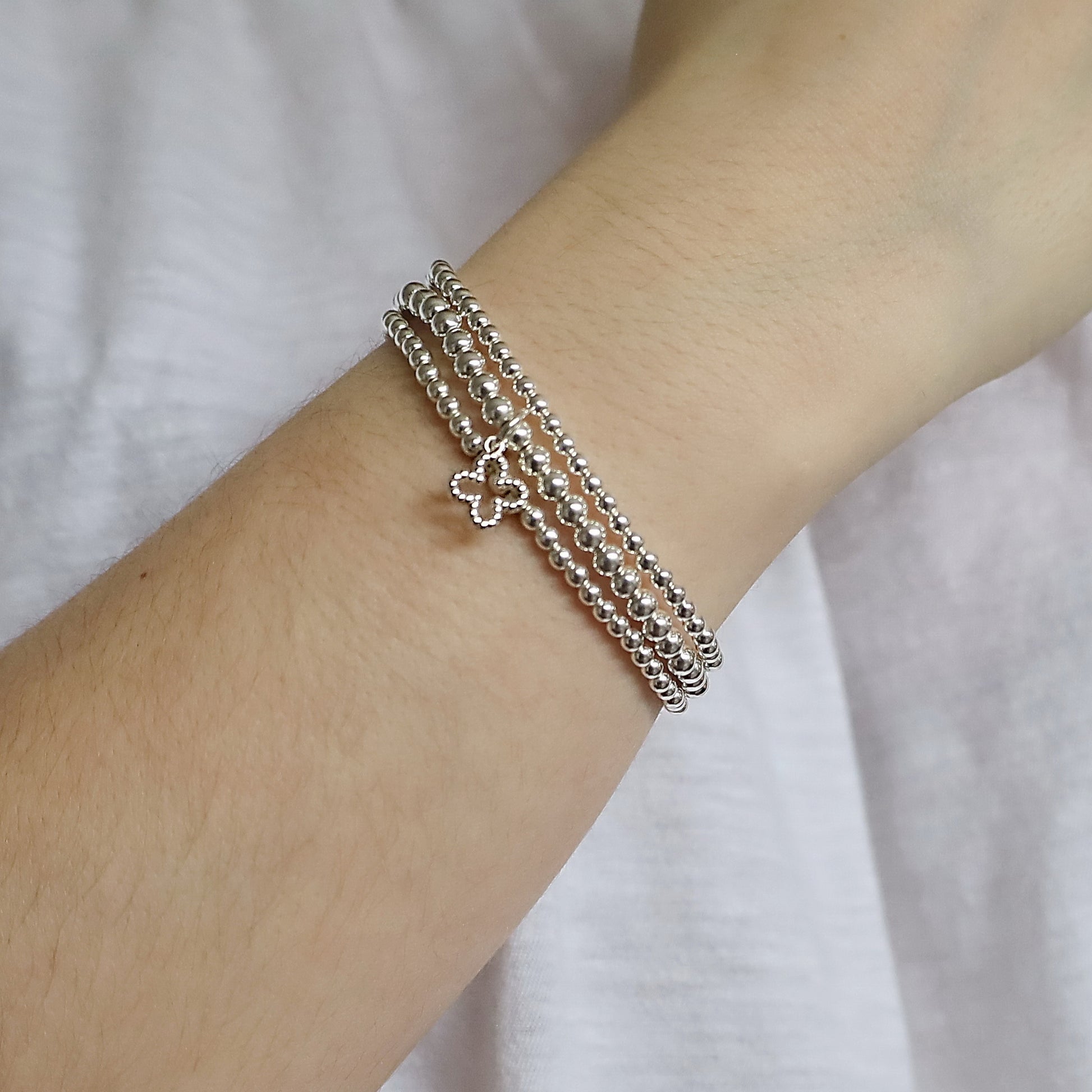 ◦ two 3mm Sterling Silver Beaded Bracelets