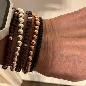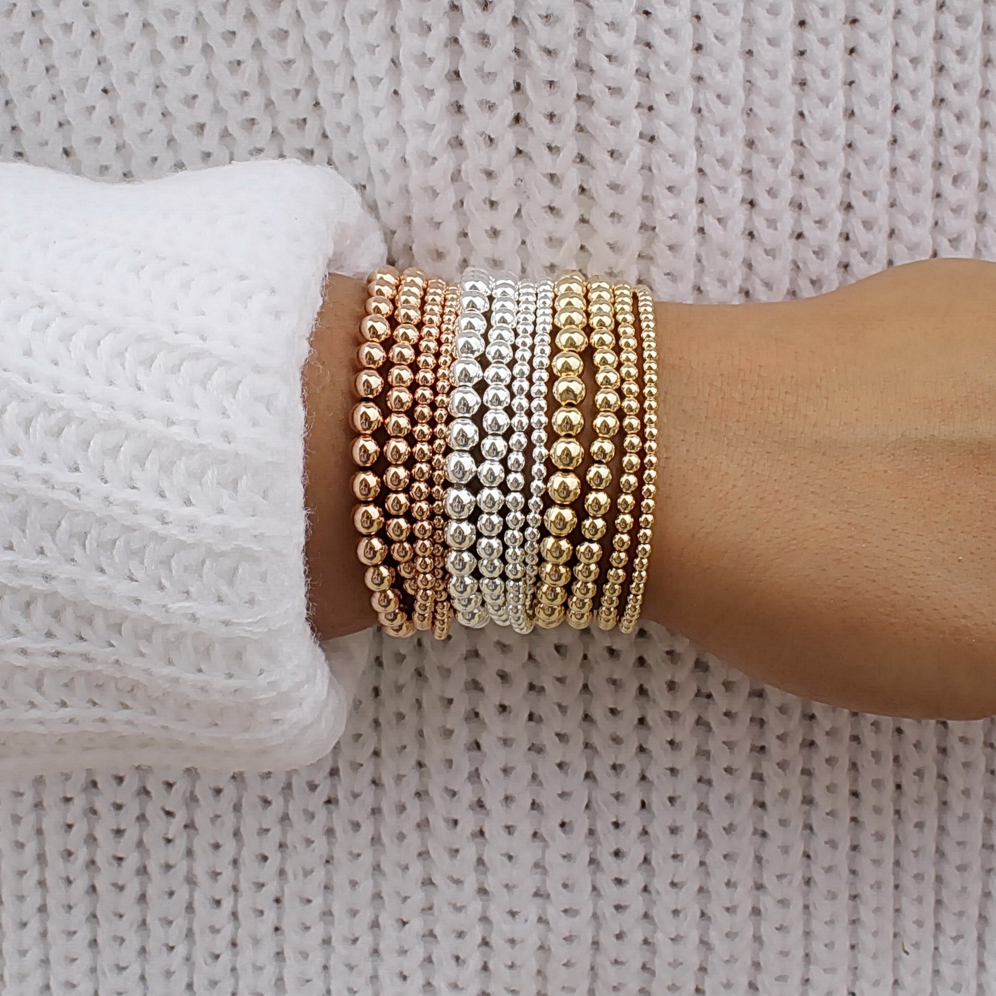 Made with stretch cord. There is not clasp with these bracelets. Beautiful stackable bracelets, Elegant, modern piece. Made from 100% 14K Gold Filled and Sterling Silver materials. It will not tarnish.