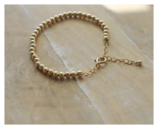14K Gold Filled 4mm beaded bracelet. Also available in 14K rose gold filled or sterling silver.