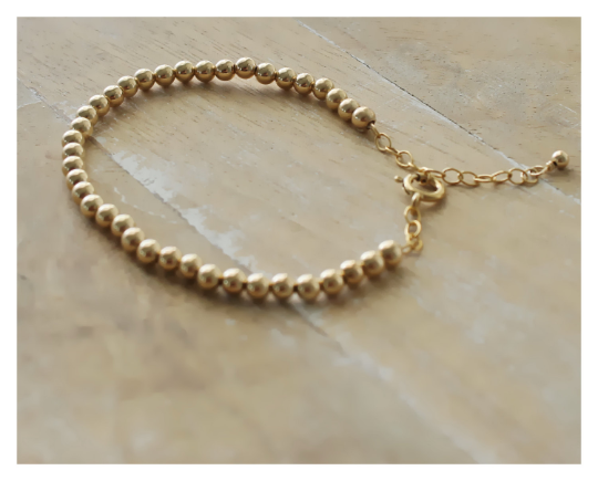 Simply gorgeous! This 14K Gold Filled 4mm beaded bracelet is elegant yet trendy. Its made with a clasp and chain. It's also available in 14K rose gold filled or sterling silver beads.