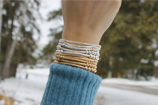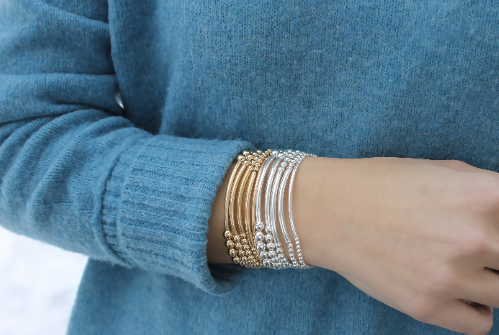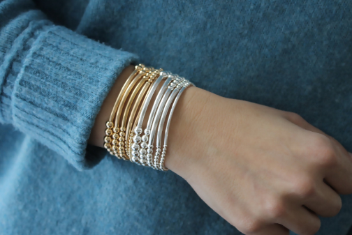 An elegant and modern beaded bracelet with a defined 2 inch long tube. Choose from quality 14K gold filled or sterling silver and also choose your bead size. Stack 'em high!