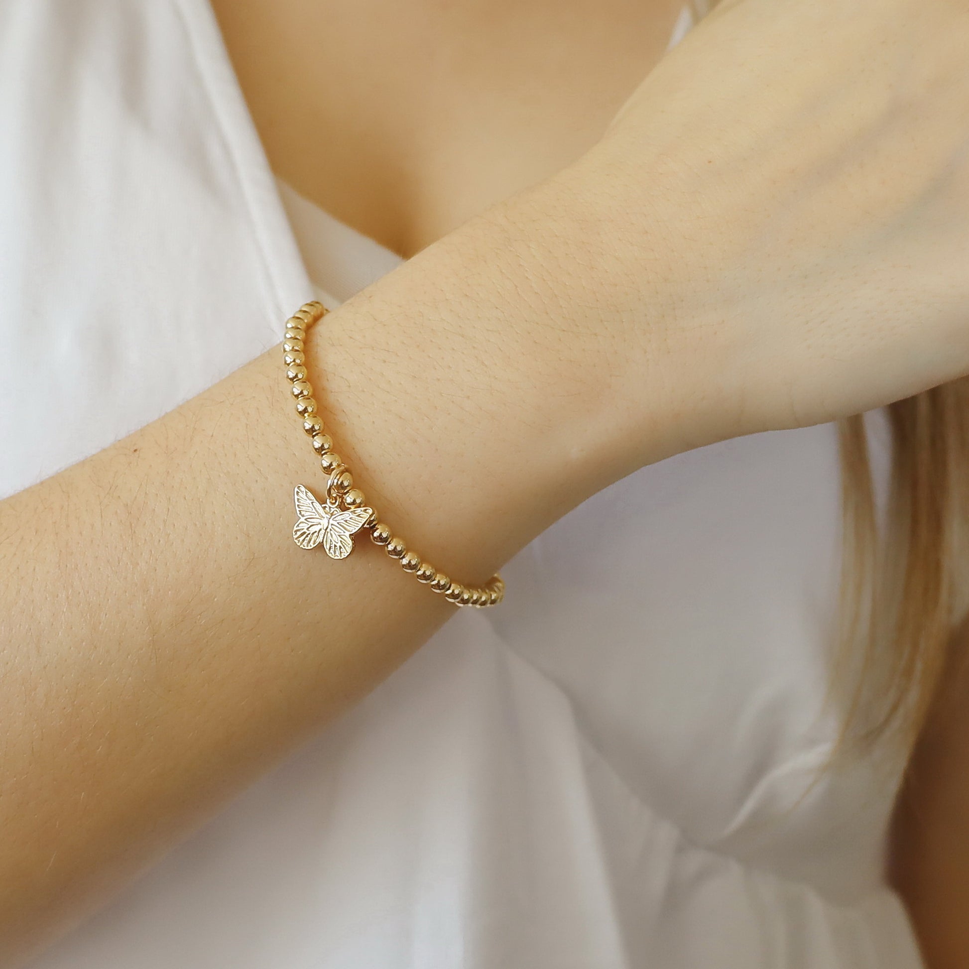 14K Gold Filled Butterfly Beaded Bracelet • B320