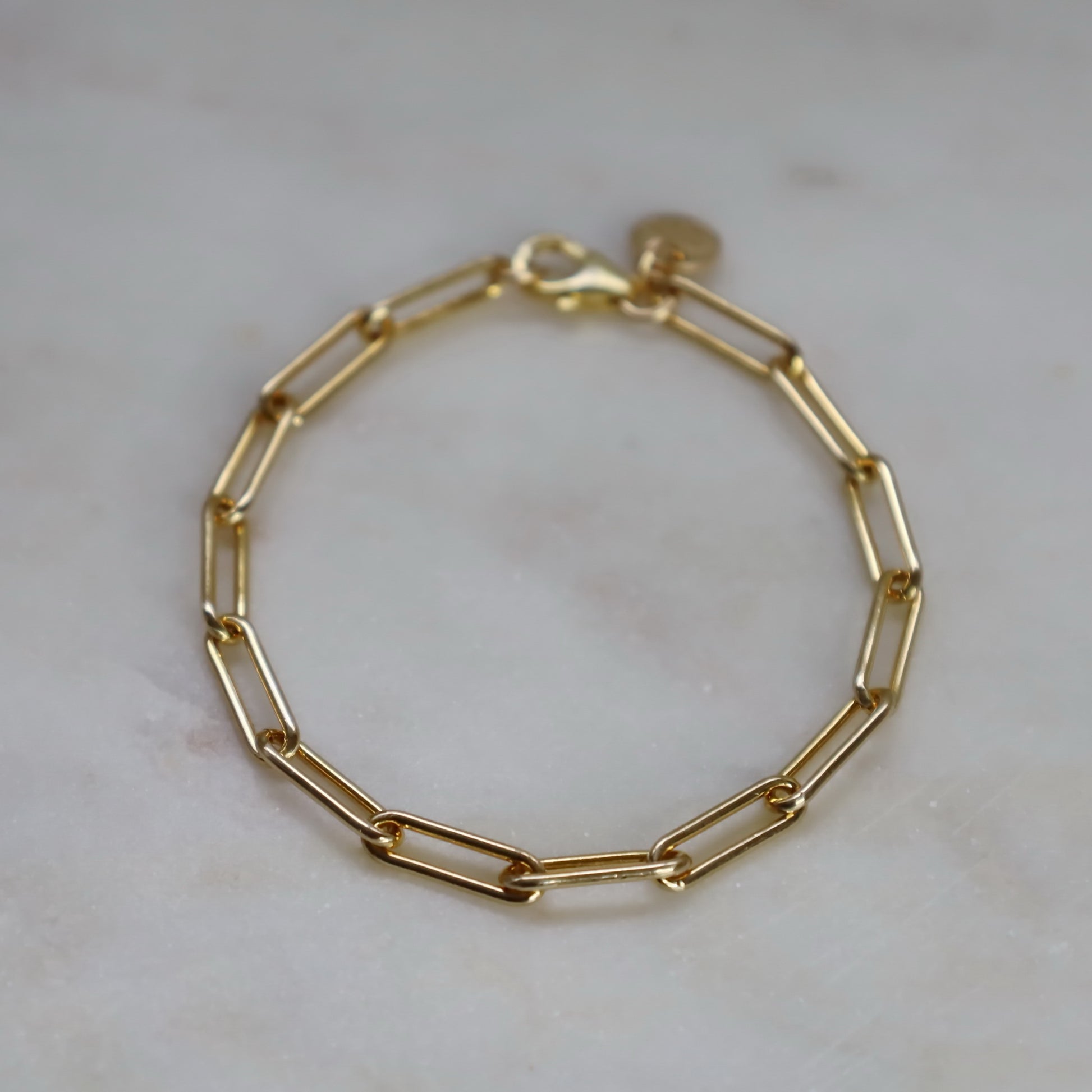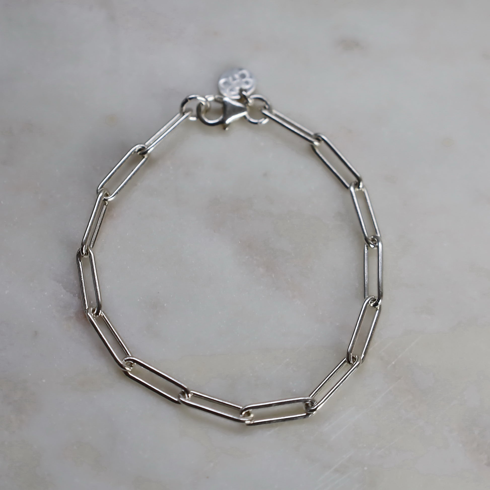 This dainty paperclip chain bracelet is a perfect bracelet to mix and match with metals and textures to create a unique bracelet stack!