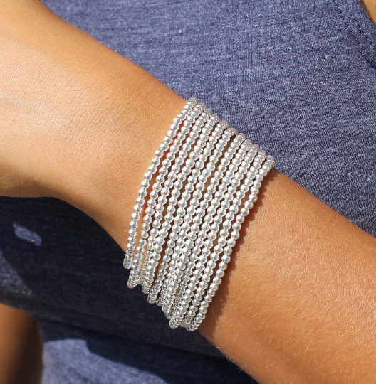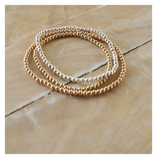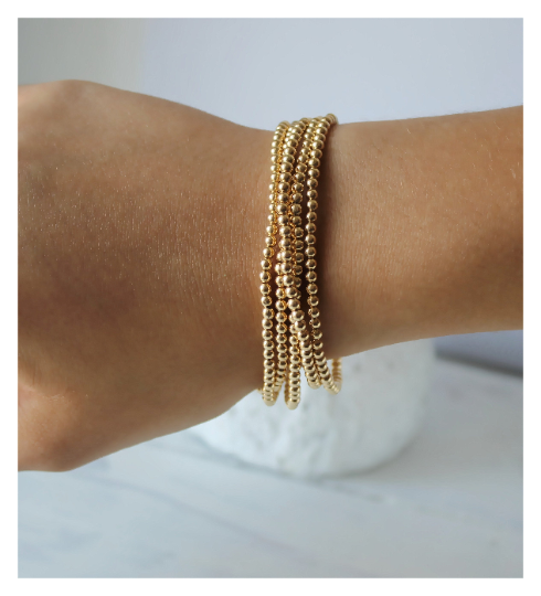 Gold beaded bracelets perfect for stacking along side other jewelry or all together!