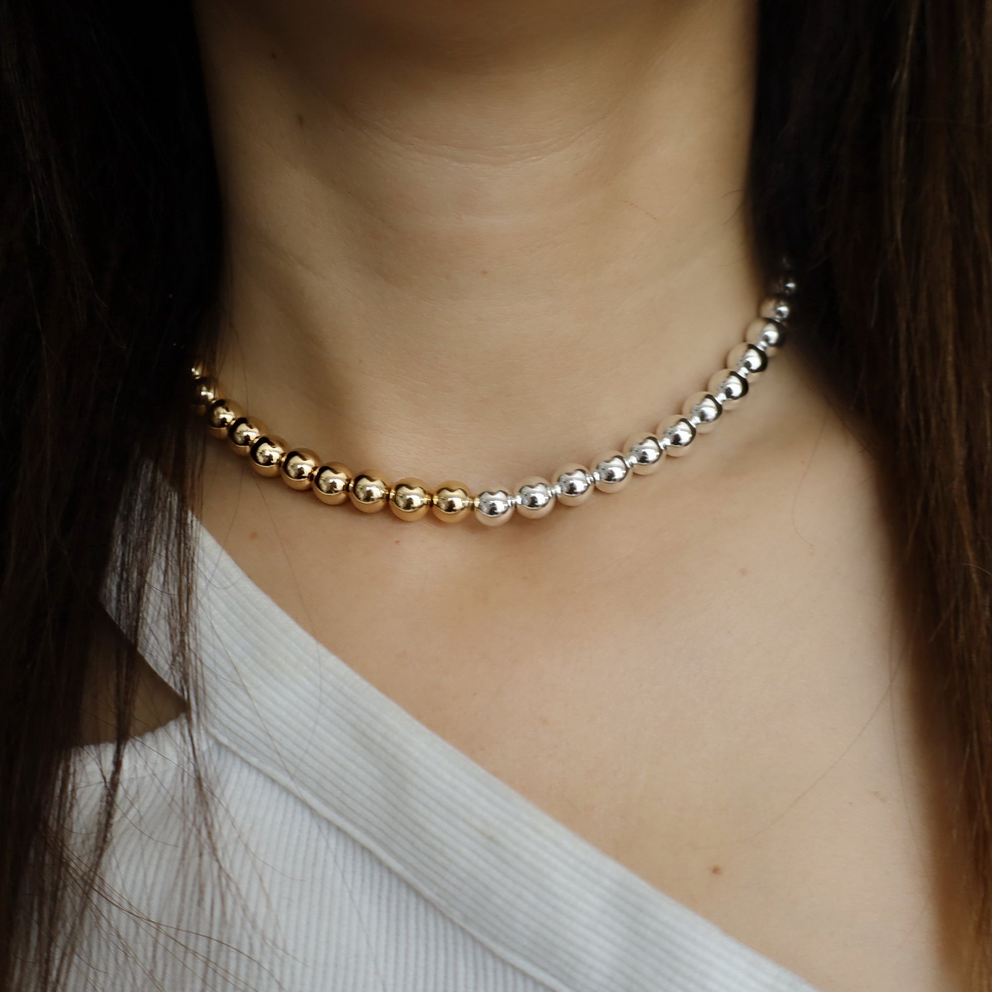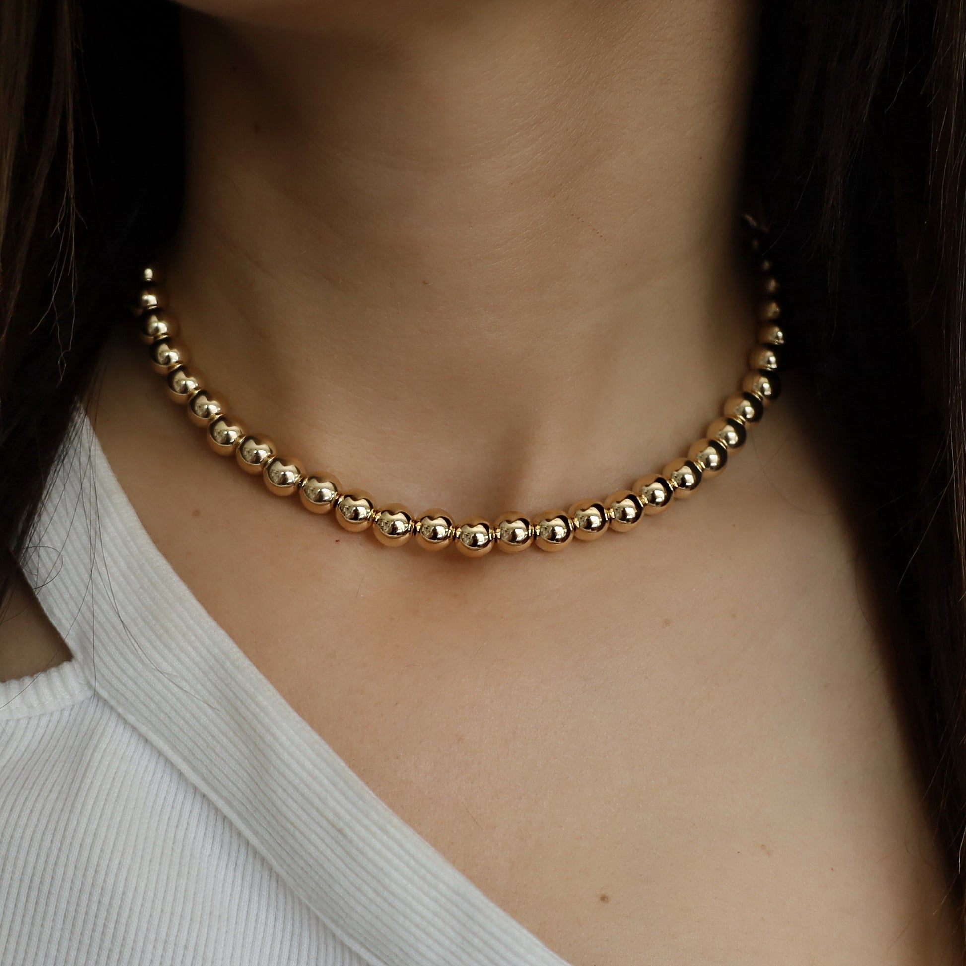 8mm Gold Beaded Magnetic Closure Necklace • B414