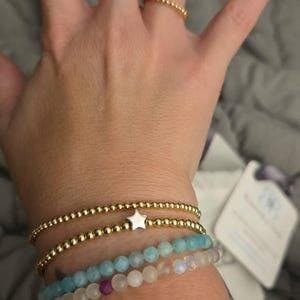 Look up at the stars, not down at your feet! Shine like a star with a set of these beautiful beaded bracelets. Available in three different colours, with a sterling silver star charm.