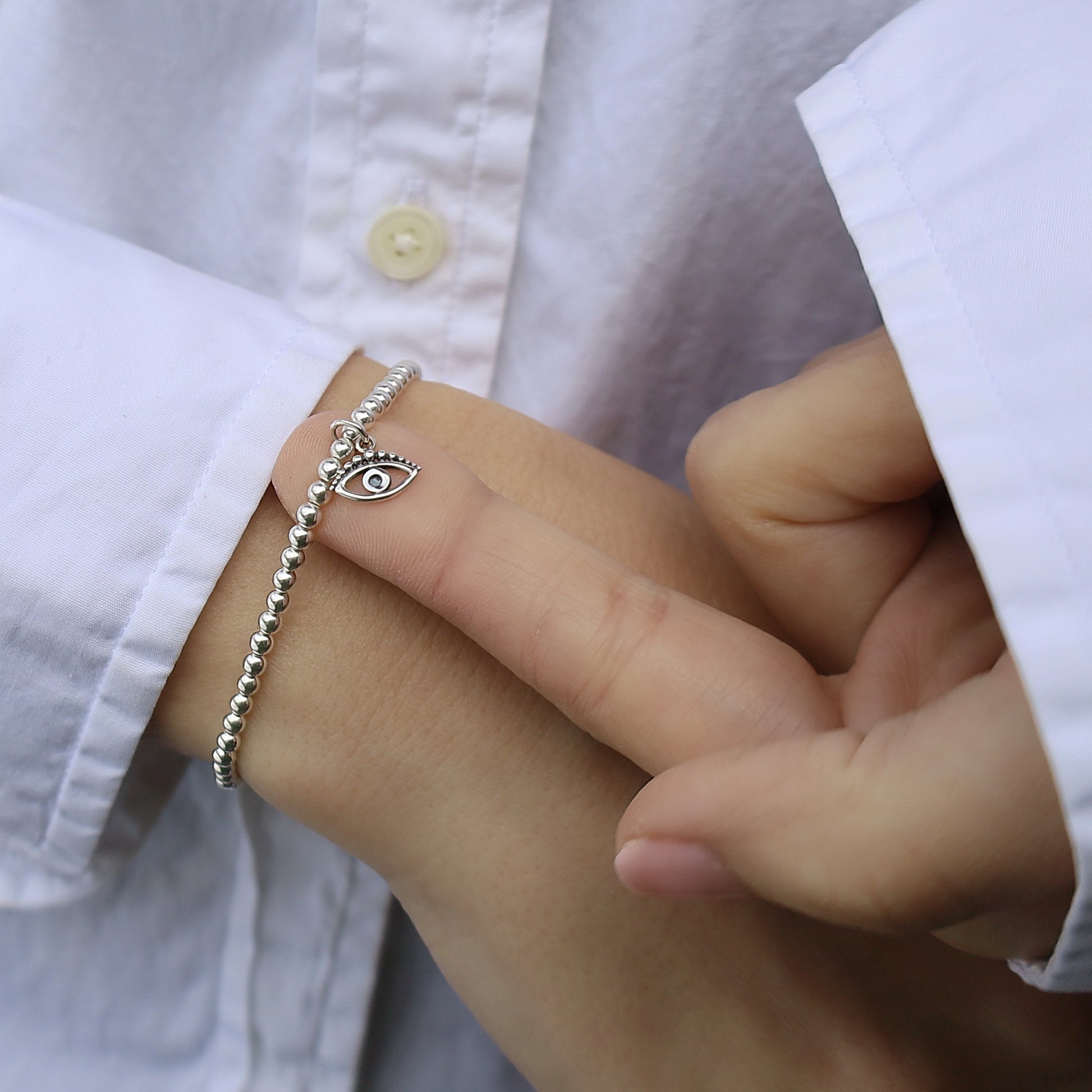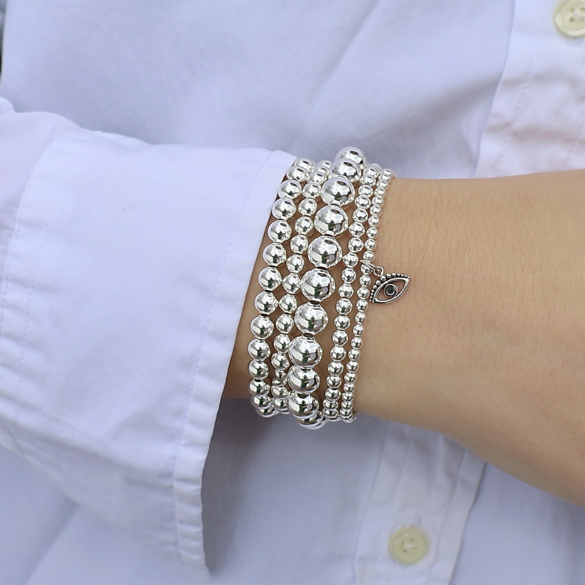 Sterling Silver Evil Eye Charm Bracelet Set • B056