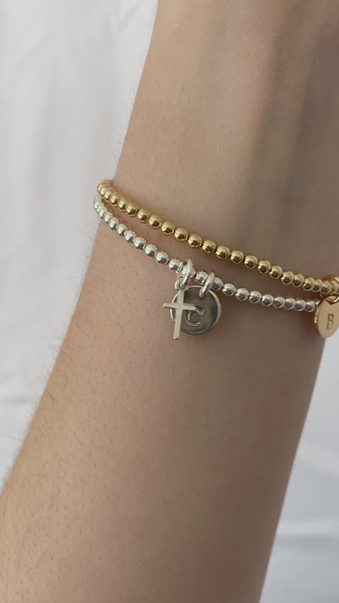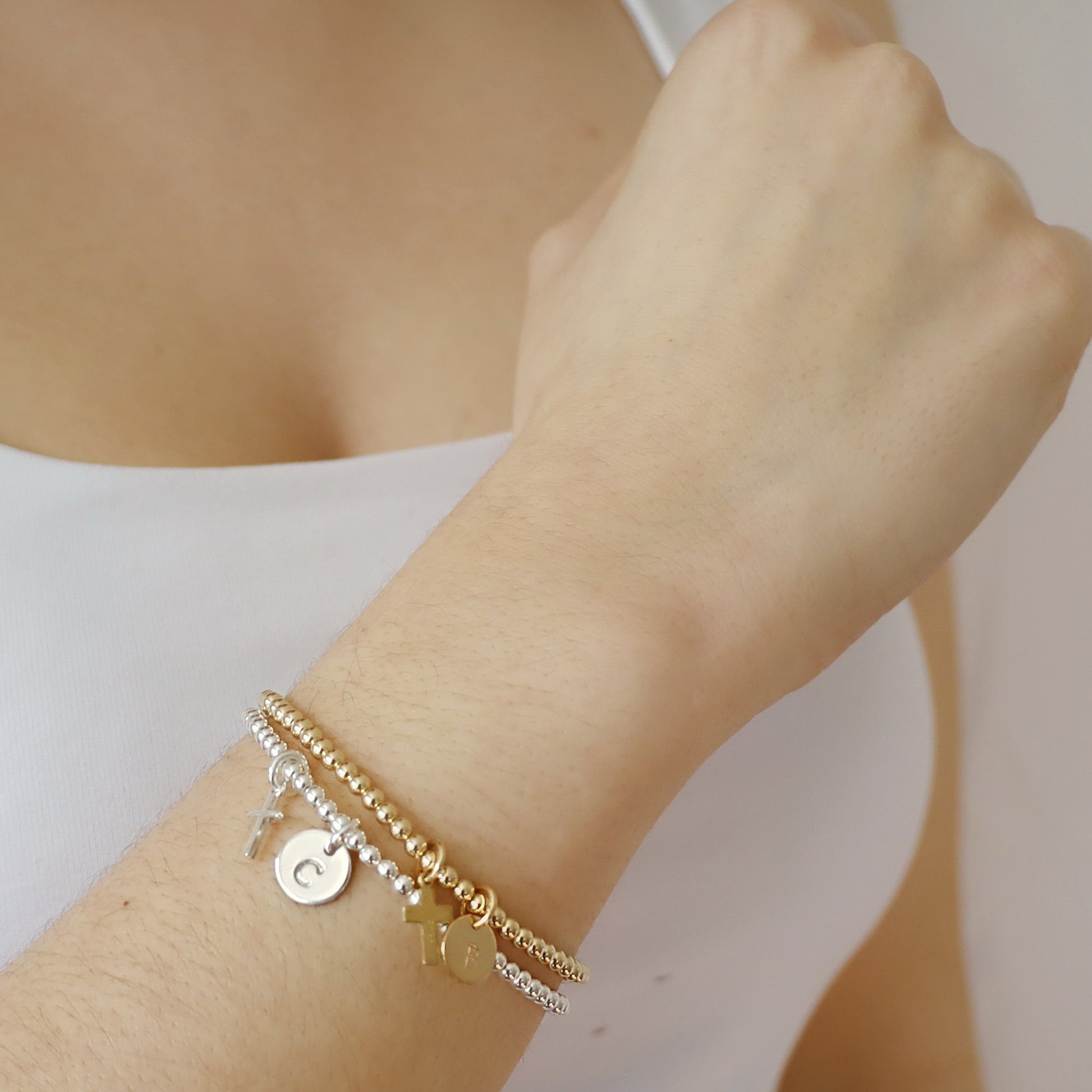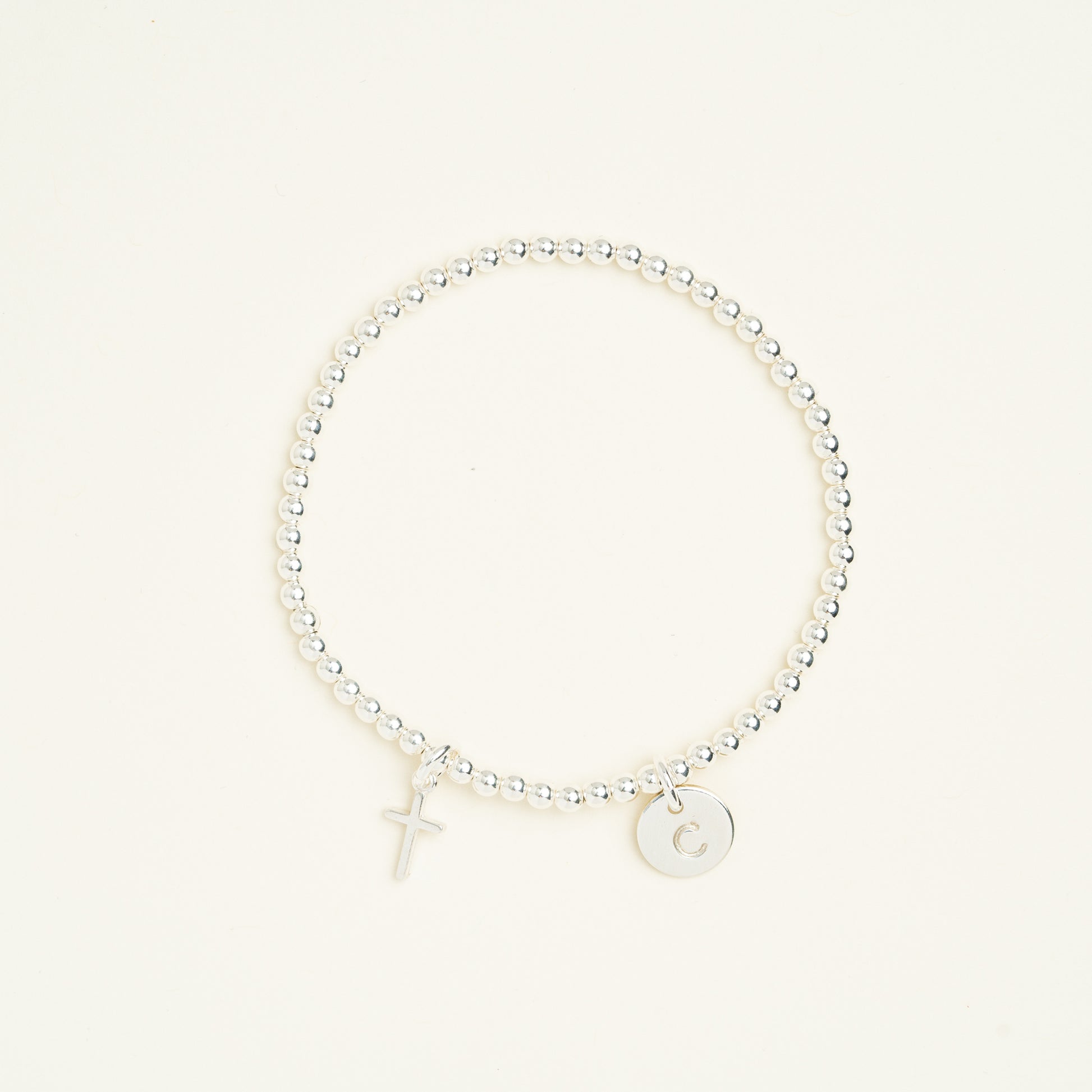 Sterling Silver or 14K Gold Filled Cross Charm Beaded Bracelet • B314