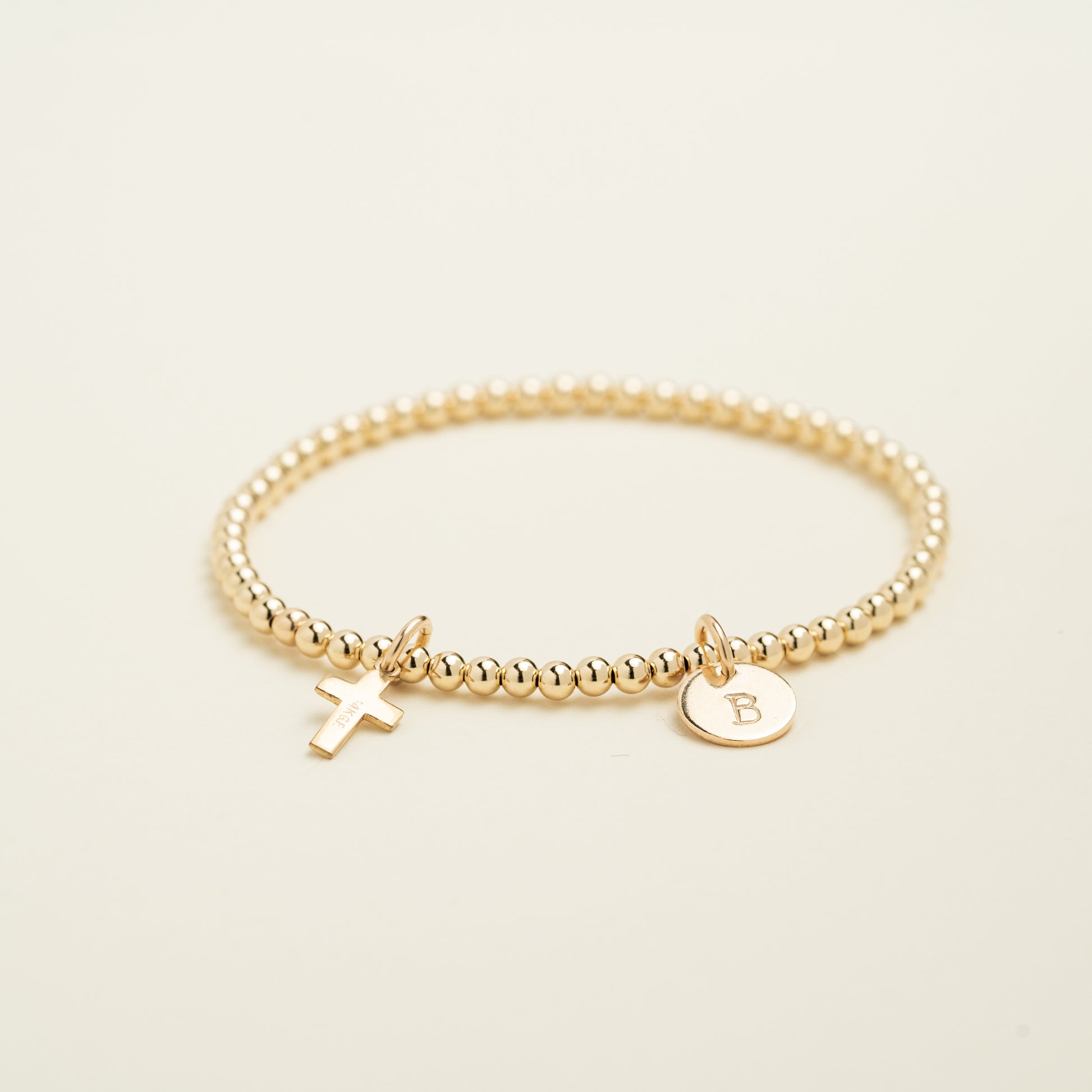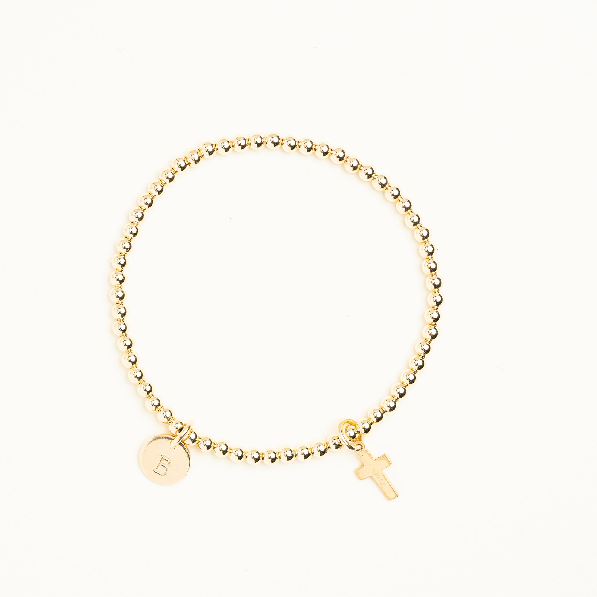 Match your Tiny Cross Necklace with this 3mm Tiny Cross Beaded Bracelet! Available in your choice of 14K Gold Filled or Sterling Silver.